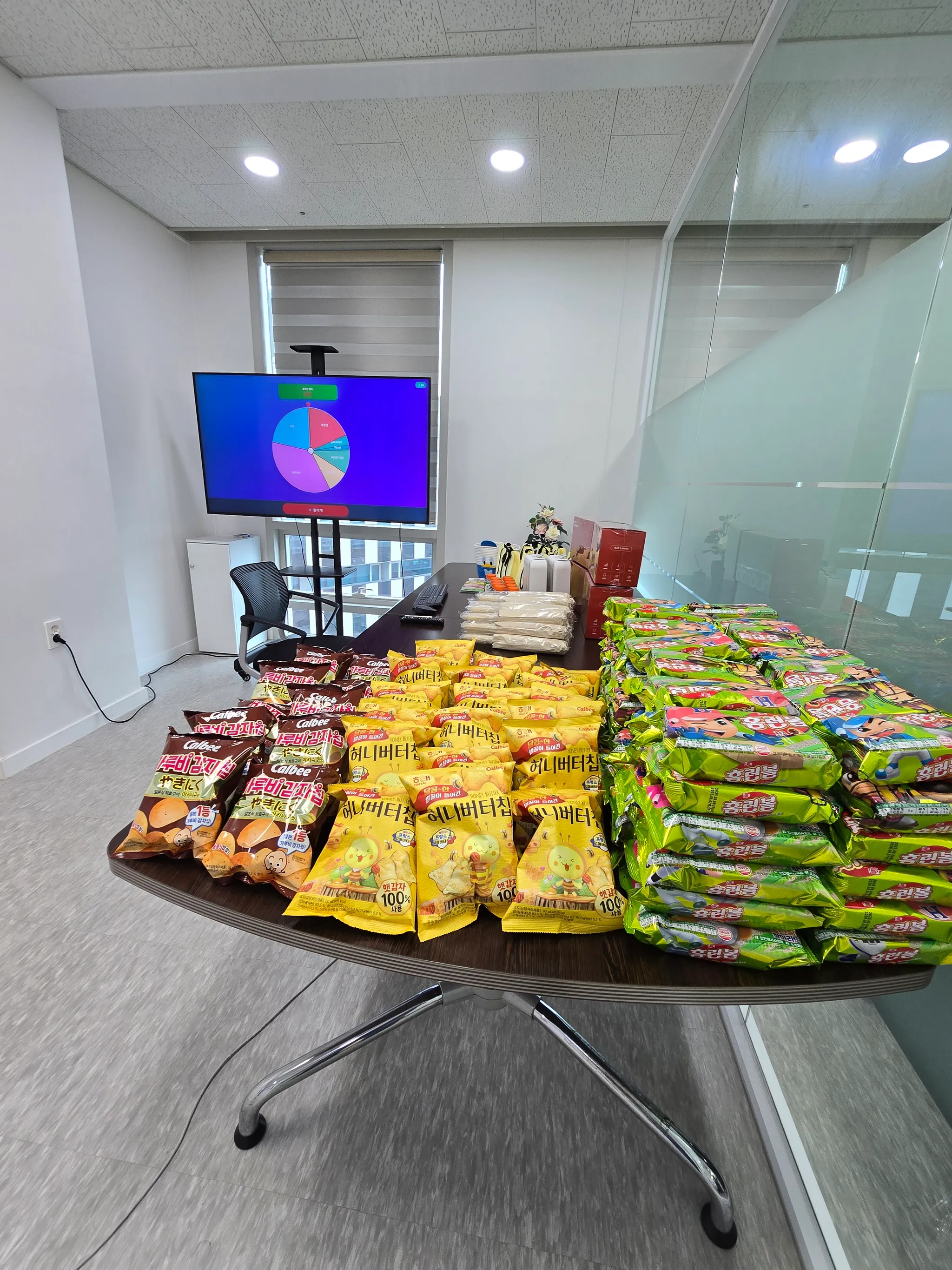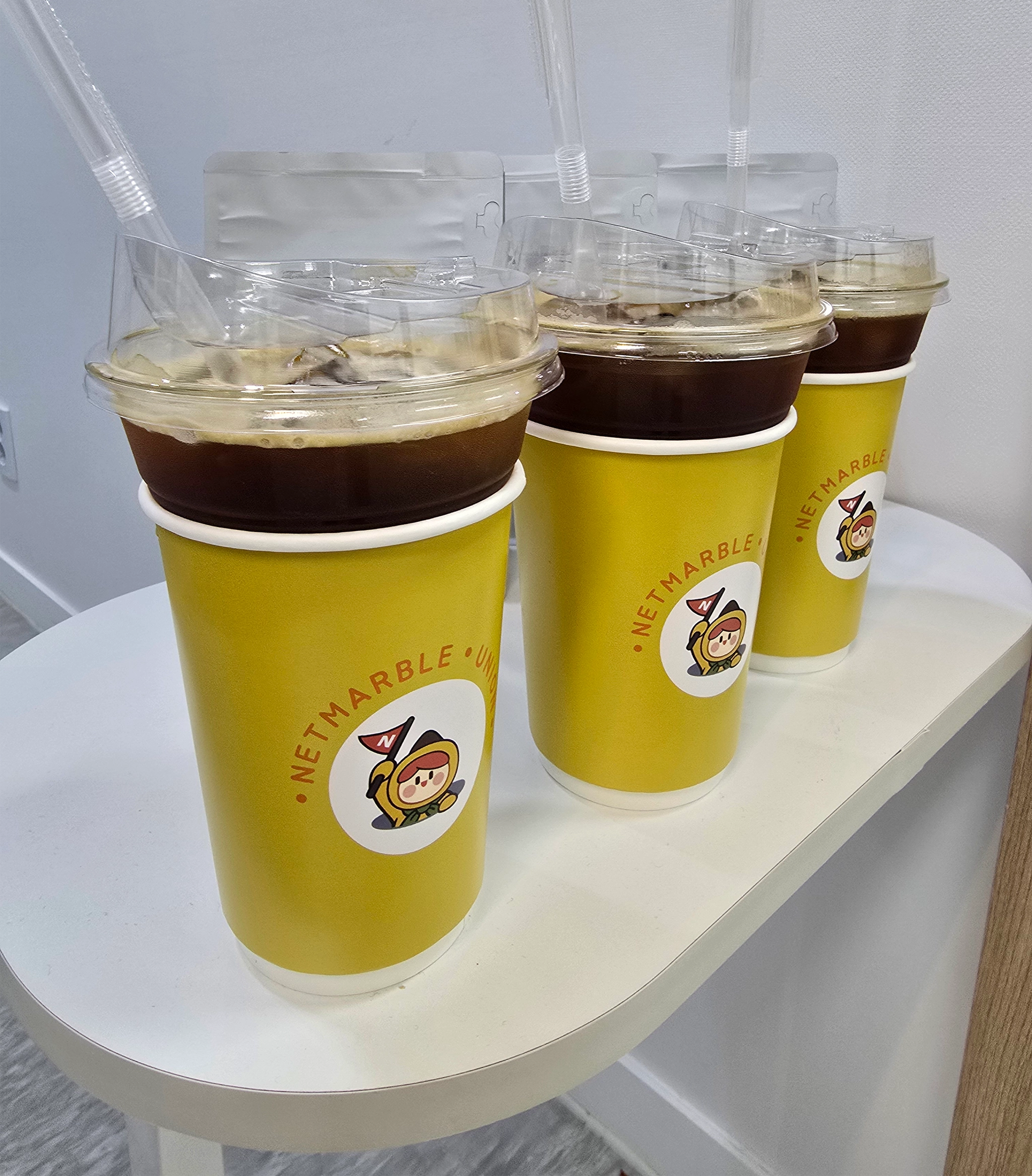 ์ฌ๋ฌด์ค ์คํ ์ด๋ฒคํธ์์๋ ์ธ๊ธฐ ์๋๋ก ๋ด๋ฆฐ ์ปคํผ๋ฅผ ์ค๋นํ์ต๋๋ค.