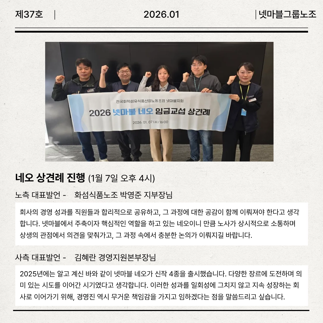 이번 간담회에는 넷마블을 포함해 스마일게이트·엔씨소프트·NHN·카카오 등 주요 게임사 노조와 화섬식품노조 IT위원회가 참석했습니다.