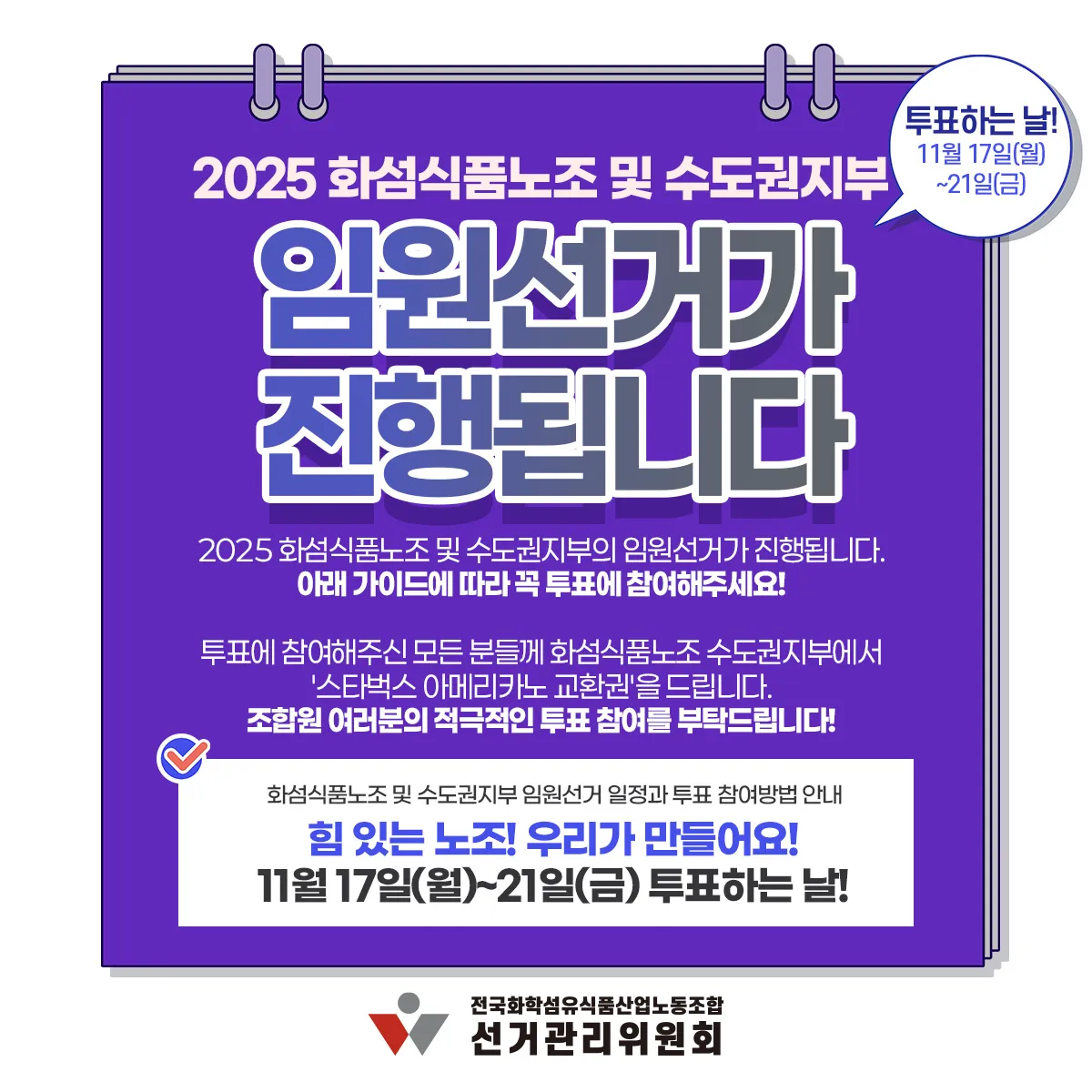 화섬식품노조 임원선거 (11.17~11.21) * 투표시 스타벅스 커피쿠폰 증정