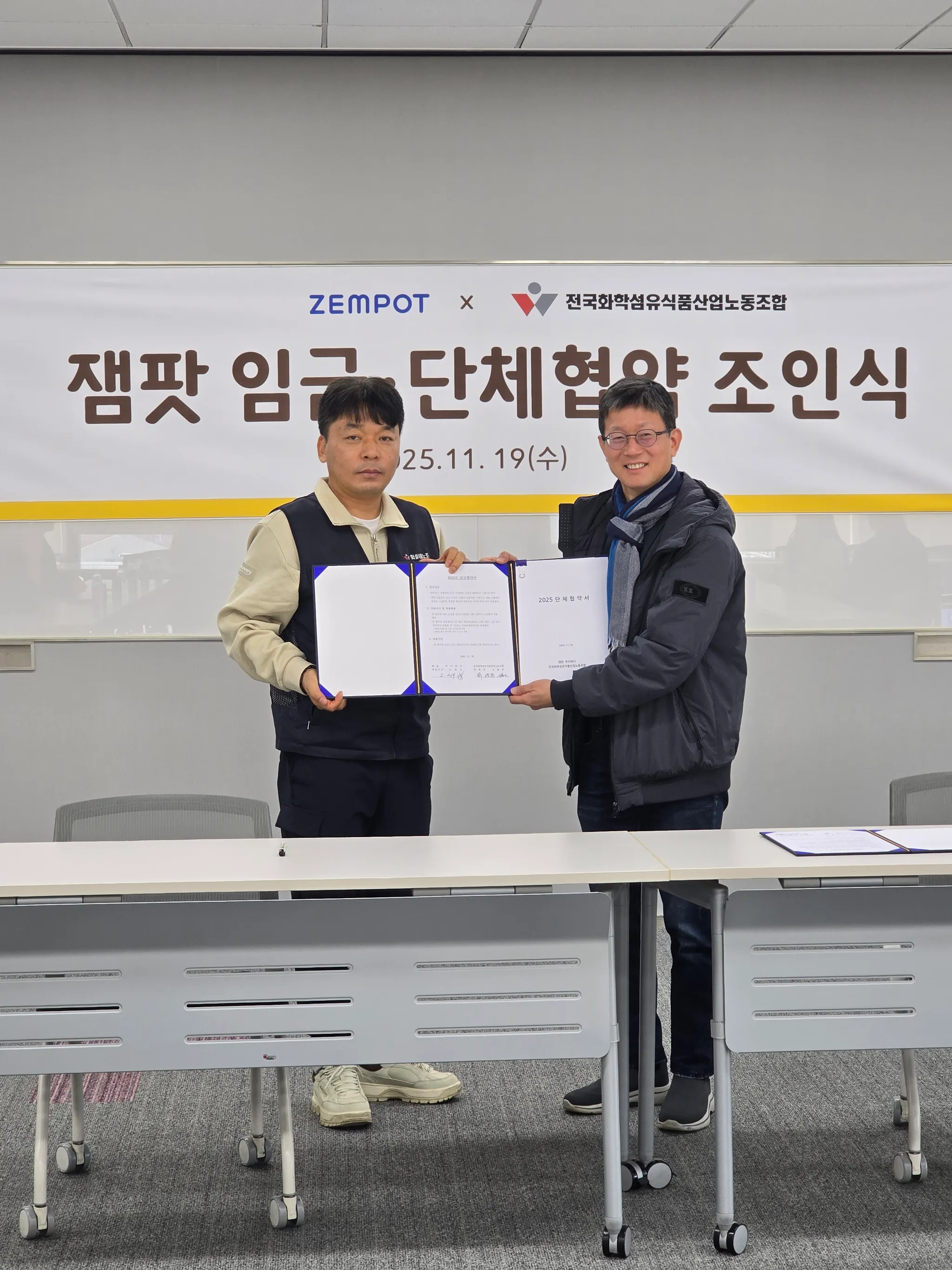 이후 양측 대표가 합의서에 공식적으로 서명하며 2025년 잼팟 임금·단체협약이 최종 체결되었습니다.